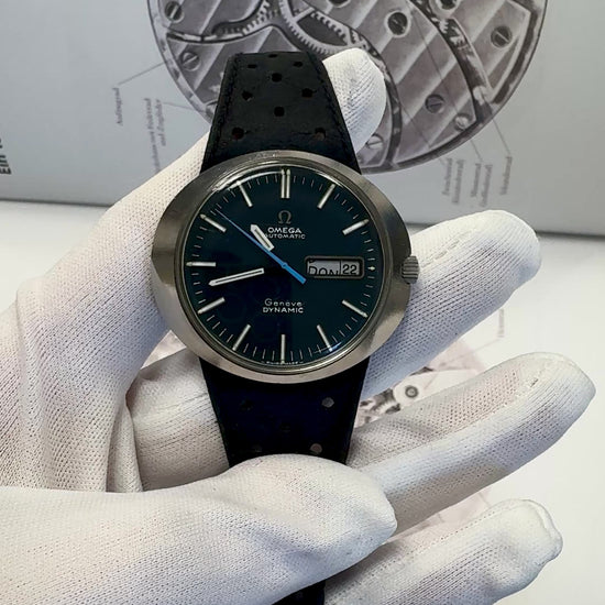 - Besonderheiten: Ein zeitloser Klassiker aus den 1970er Jahren! 🕰️✨ Diese Omega Genève Dynamic besticht durch ihr ikonisches, ergonomisches Design, das perfekt am Handgelenk sitzt. Das tiefblaue Zifferblatt mit markanten Indizes und das automatische Uhrwerk machen sie zu einem stilvollen und zuverlässigen Begleiter. 🔥 Ein Muss für Vintage-Liebhaber und Sammler!